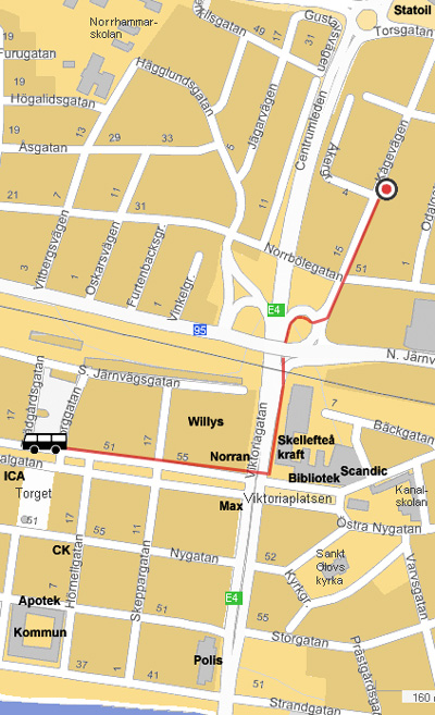 Det är lätt att ta sig till Skellefteå. Centrum ligger bara ett stenkast väster om E4:an. Från och till Skellefteå flygplats i Falmark tar bara 20-25 minuter, tack vare välordnade taxi- och bussförbindelser. Med tåg åker du bäst via Jörn, där anslutningsbussen (måndag - fredag) tar dig vidare till Skellefteå (ungefär en timmes resa). |